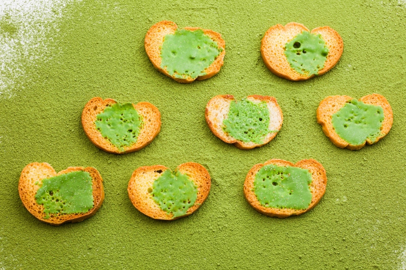 抹茶小脆——清鲜的抹茶融入浓醇的奶油,让抹茶的清香一丝丝浸入奶油中,再遇上松脆适口的面包片。一口一口,抹茶香、奶香、面包香同时绽放在味蕾,根本停不下嘴。