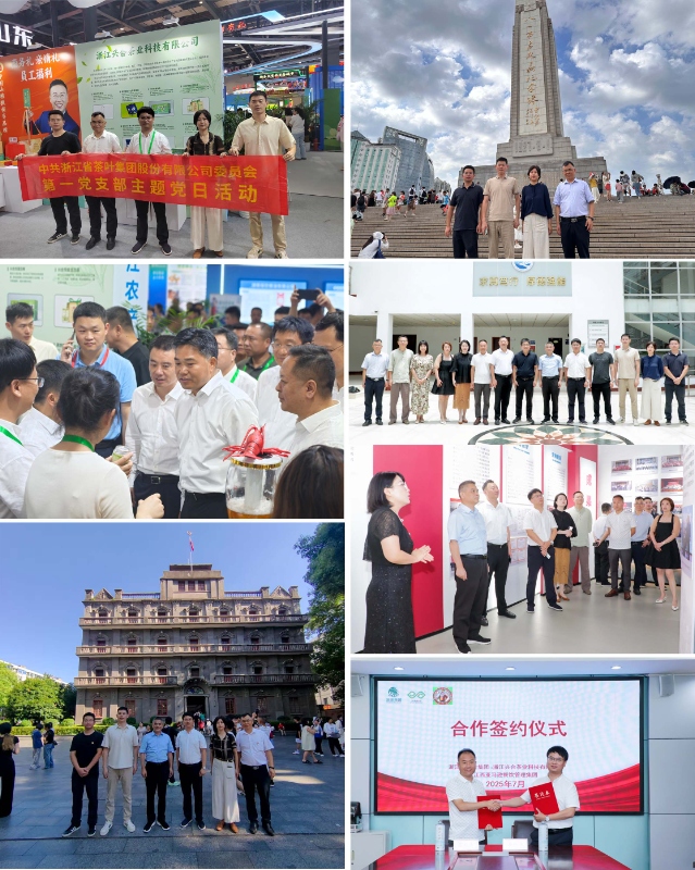 为拓宽行业视野,促进党建融合业务,支部党员还参加了商务部2025年全国农产品产销大会(华东片区),向巡馆的领导嘉宾介绍了兴合科技创新开发的安吉白茶精酿啤酒等茶衍生品;赴江西旅游商贸职业学院,与该学院就职业技能培训、标准制修订和产教融合发展等合作事项进行交流,期间,兴合科技还与江西亚马逊餐饮集团现场举行了合作签约仪式,为双方在连锁餐饮渠道创新茶产品供应与服务拓展方面推进合作;并参观考察了江西林恩茶业,学习其生态种植理念、精益生产管理及创新营销模式。