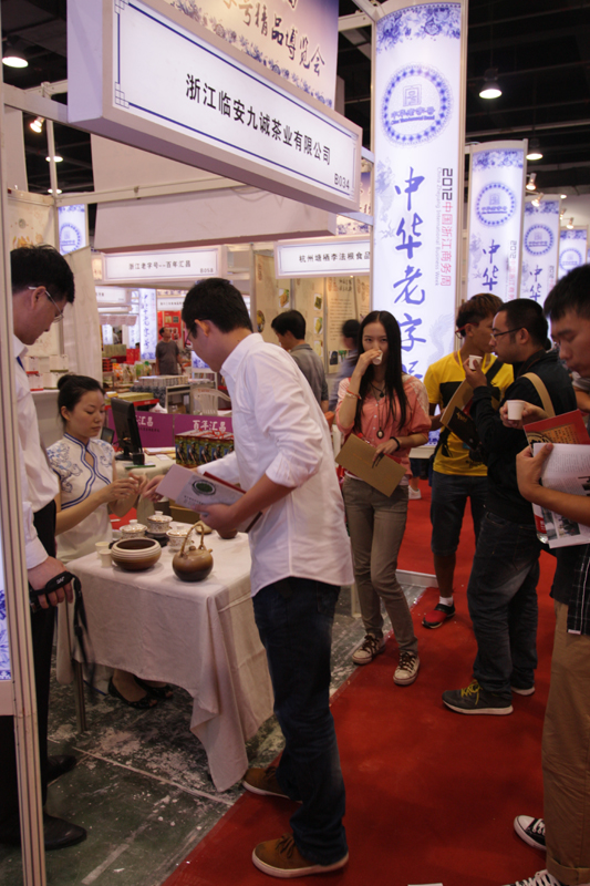 9月14日-17日,第九届中国中华老字号精品博览会在浙江杭州和平会展中心举行,公司直属企业浙江临安九诚茶业有限公司以老字号品牌“福茂和记”参加了展会。为更好地宣传企业形象,推广产品,公司茶艺队派员在展会中表演茶艺,她们以柔美的动作,优雅的举止为顾客演示了花茶、绿茶、乌龙茶的冲泡方法,并为在场顾客奉上泡好的茶汤,吸引了大批顾客驻足观看,取得了良好的销售成果,受到组委会的好评。