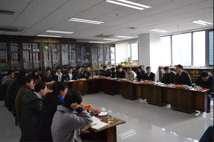 随后,倪铭峰总经理表达了对浙江大学科研落地能力的肯定,也再次强调了以销带产的发展理念,提出了对茶叶"互联网+"、"金融+"、"科技+"的畅想。浙江大学食品系尹源明副教授介绍了其团队在食品储藏、加工领域的研究,团队减肥食品的研究成果,并提出了对未来食品产业发展的前瞻性预测。随着交流的深入,茶学系何普明教授、李博副教授、金恩惠博士后以及刘晓博、王耀民、施林佐等博士、硕士研究生代表也纷纷参与讨论,碰撞出了更多思想的火花。