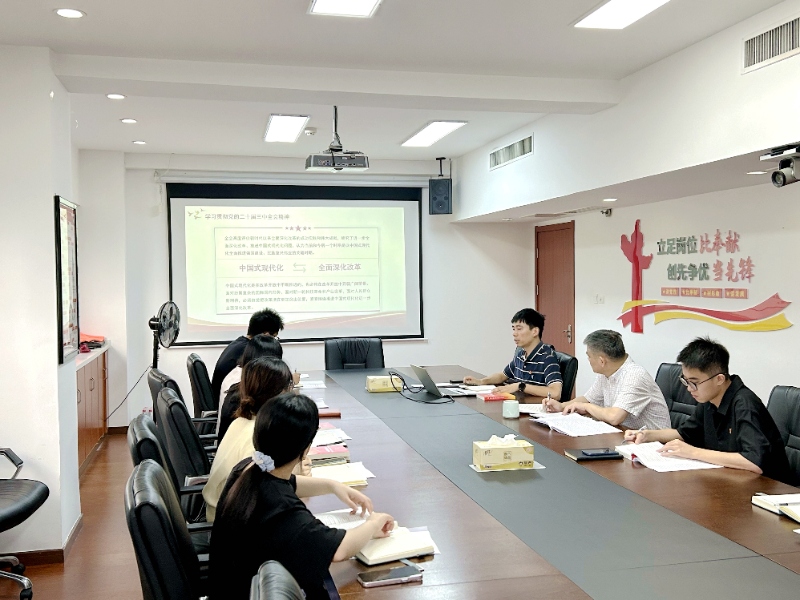 8月15日,开云(中国)第二党支部召开党员大会,支部书记苏时雨以学习贯彻党的二十届三中全会精神为主题开展党课讲学,集团党委副书记、总经理王兵同志以普通党员身份参加活动。