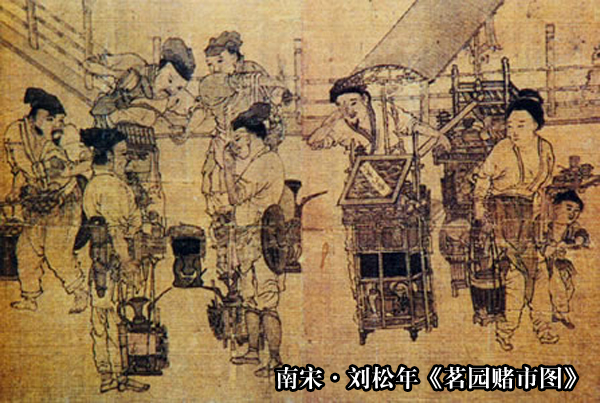末茶点饮法是宋代主导的饮茶方式,点茶是宋代的主流茶艺,在此基础上,出现了为品鉴茶叶品质高下的斗茶,以及茶艺高手和文人雅玩的分茶。点茶,因以瓶滴注为点,故名。宋代胡仔《苕溪渔隐丛话》前集卷四十六引《学林新编》:“茶之佳品,皆点啜之,其煎啜之者,皆常品也。”蔡襄《茶录·点茶》:“钞茶一钱七,先注汤,调令极匀;又添注入,环回击拂,汤上盏可四分则止。"点茶盛行于宋代,故有“唐煮宋点”之说。点茶用饼茶或者散茶研磨成的末茶,茶器有茶焙、茶笼、砧榷、茶钤、茶碾、茶罗、茶盏、茶匙/茶筅、汤瓶等。点茶技艺有炙茶(烤干水气)、碾茶(茶块碾成粉面)、罗茶(用绢罗筛茶)、候汤(选水和烧水)、憎盏(用开水冲洗茶盏)和点茶(沸水冲泡)等基本过程。